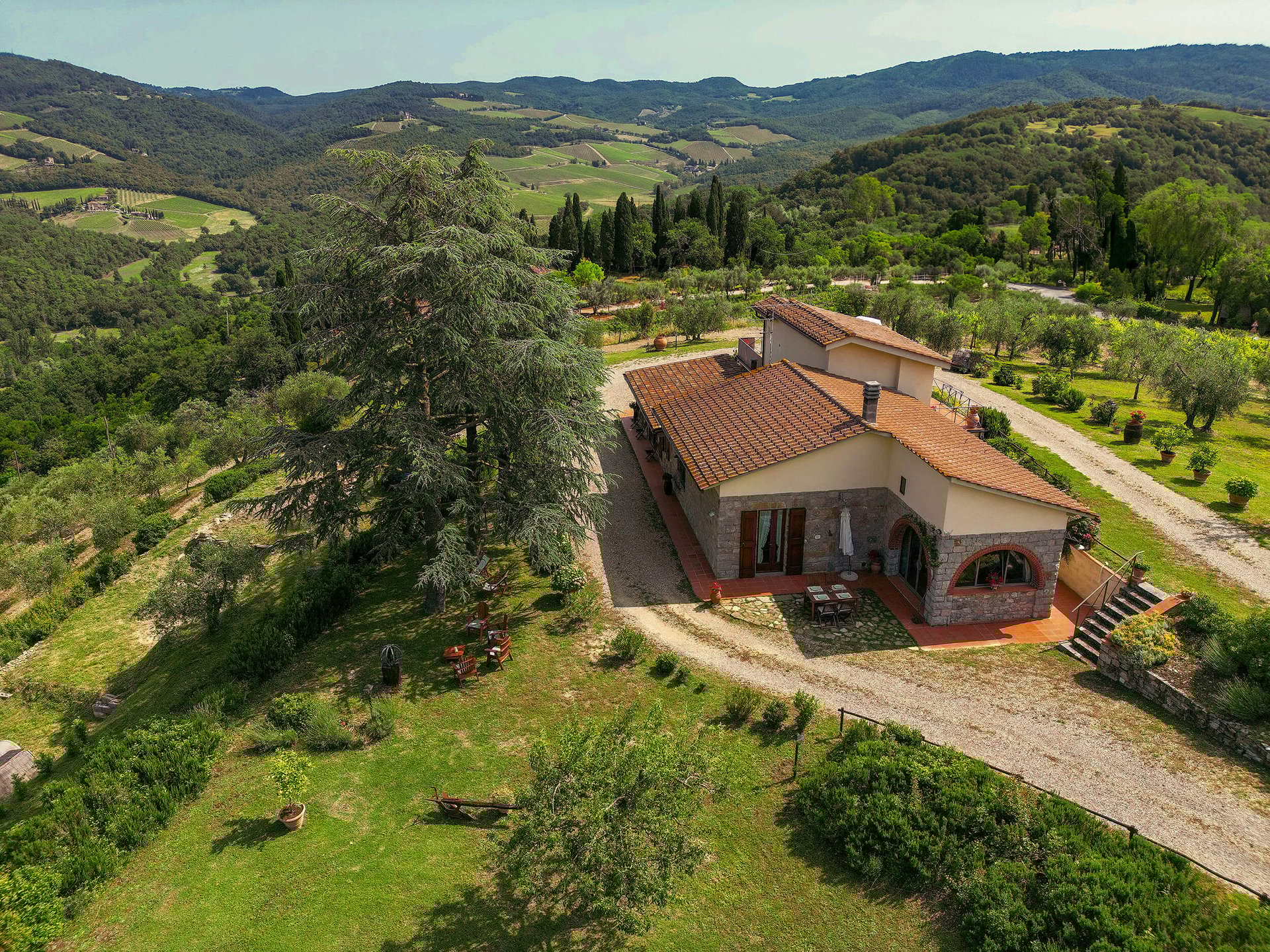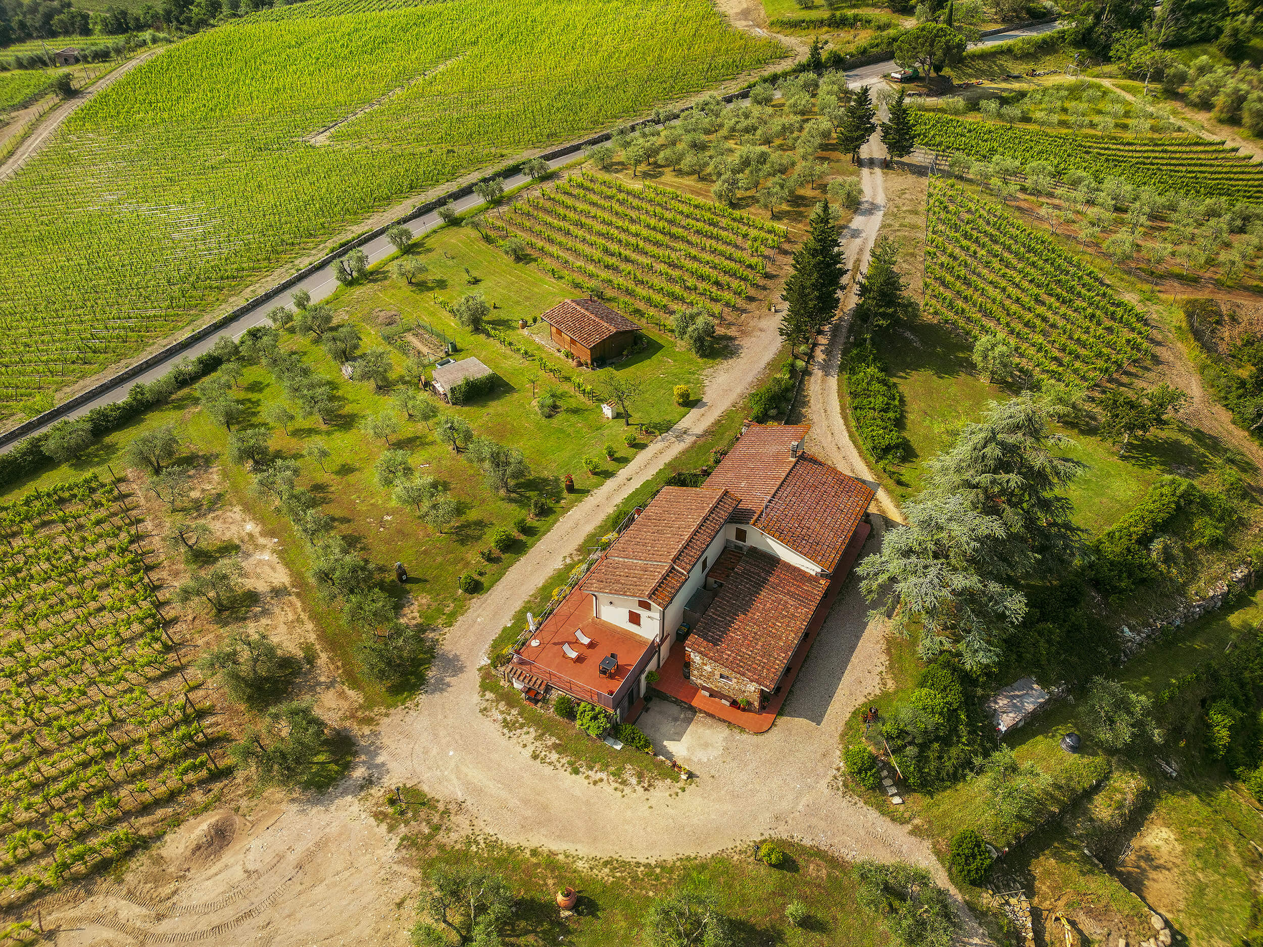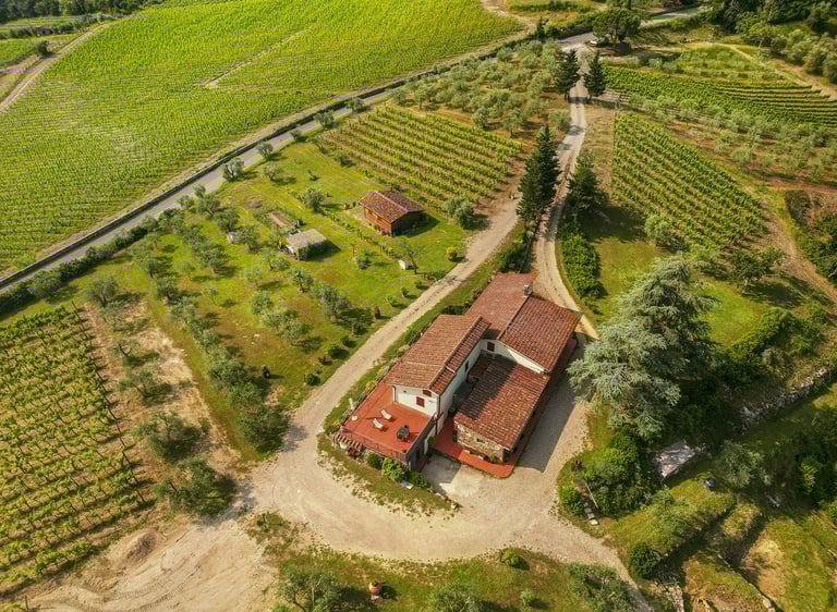 La nostra tenuta sorge in una posizione privilegiata, un angolo di paradiso gelosamente custodito dove il silenzio è interrotto solo dal melodioso canto degli uccelli e dal fruscio delle foglie accarezzate dalla brezza.