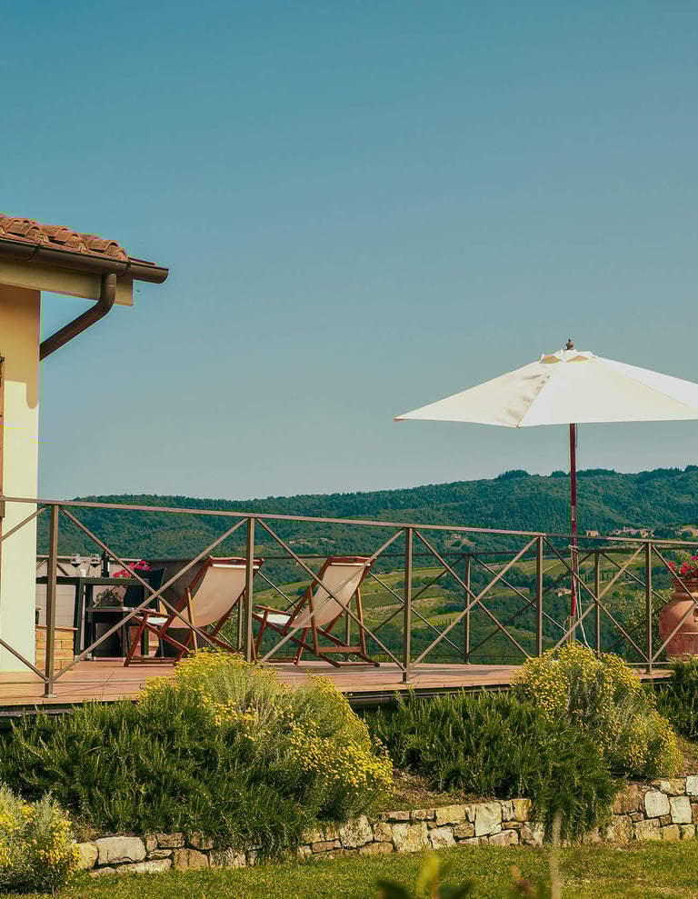 La Terrazza dispone di una camera dal letto, un bagno e una cucina abitabile. La sua particolarità sta nella grande terrazza che guarda gli uliveti e i vigneti della Tenuta. La vista a 360° sul panorama circostante fa sì che ogni cena e ogni istante sia di pace e tranquillità.